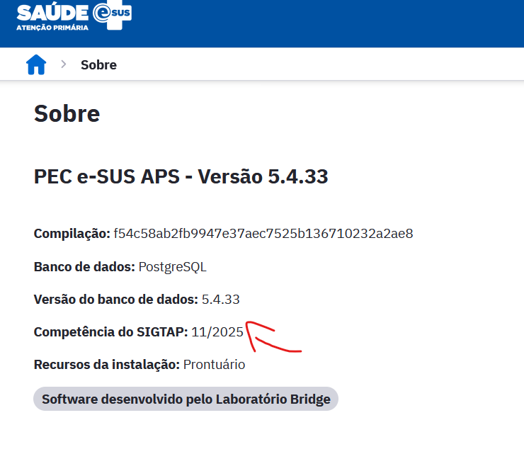 Imagem do e-SUS aonde mostra competência do mês 11 de 2025 da tabela SIGTAP